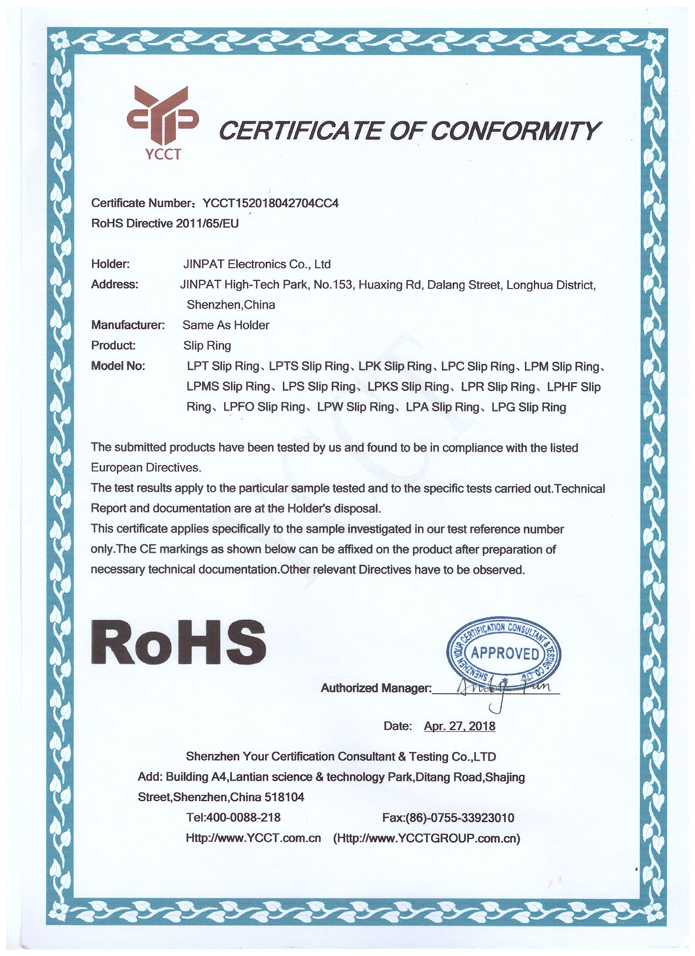 晶沛通過(guò)了歐盟CE認(rèn)證副都心、FCC認(rèn)證不胜枚举、SGS認(rèn)證盗贼喊捉贼、BV“船級(jí)社”認(rèn)證、防爆認(rèn)證等多項(xiàng)認(rèn)證,生產(chǎn)的導(dǎo)電滑環(huán)都符合RoHS環(huán)保要求,先后被授予“國(guó)家高新技術(shù)企業(yè)”稱(chēng)號(hào),目前已獲得45項(xiàng)專(zhuān)利,其中發(fā)明專(zhuān)利6項(xiàng)。